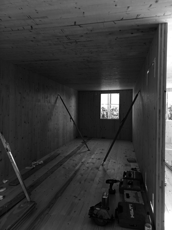 Brettsperrholz bietet die besten Vorraussetzungen für einen diffusionsoffenen Wandaufbau. Das Massivholz reguliert die Feuchte der Raumluft, isoliert im Sommer und dient im Winter als Wärmespeicher.